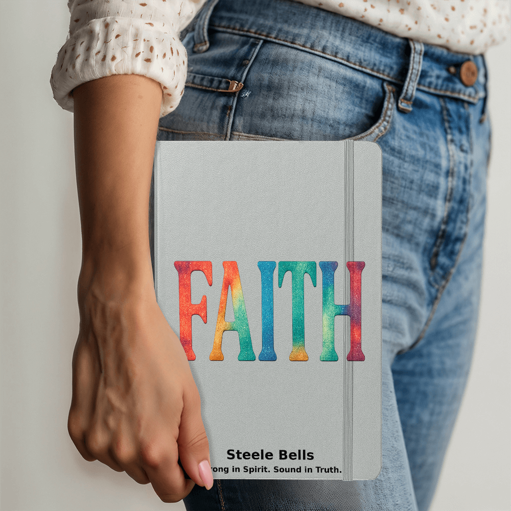 Let your faith shine with the Steele Bells Faith Journal—a vibrant and empowering space to reflect, pray, and grow. Adorned with a dazzling, multi-colored “FAITH” design, this journal is more than just pages—it’s a daily reminder of God’s promises and your unwavering trust in Him.