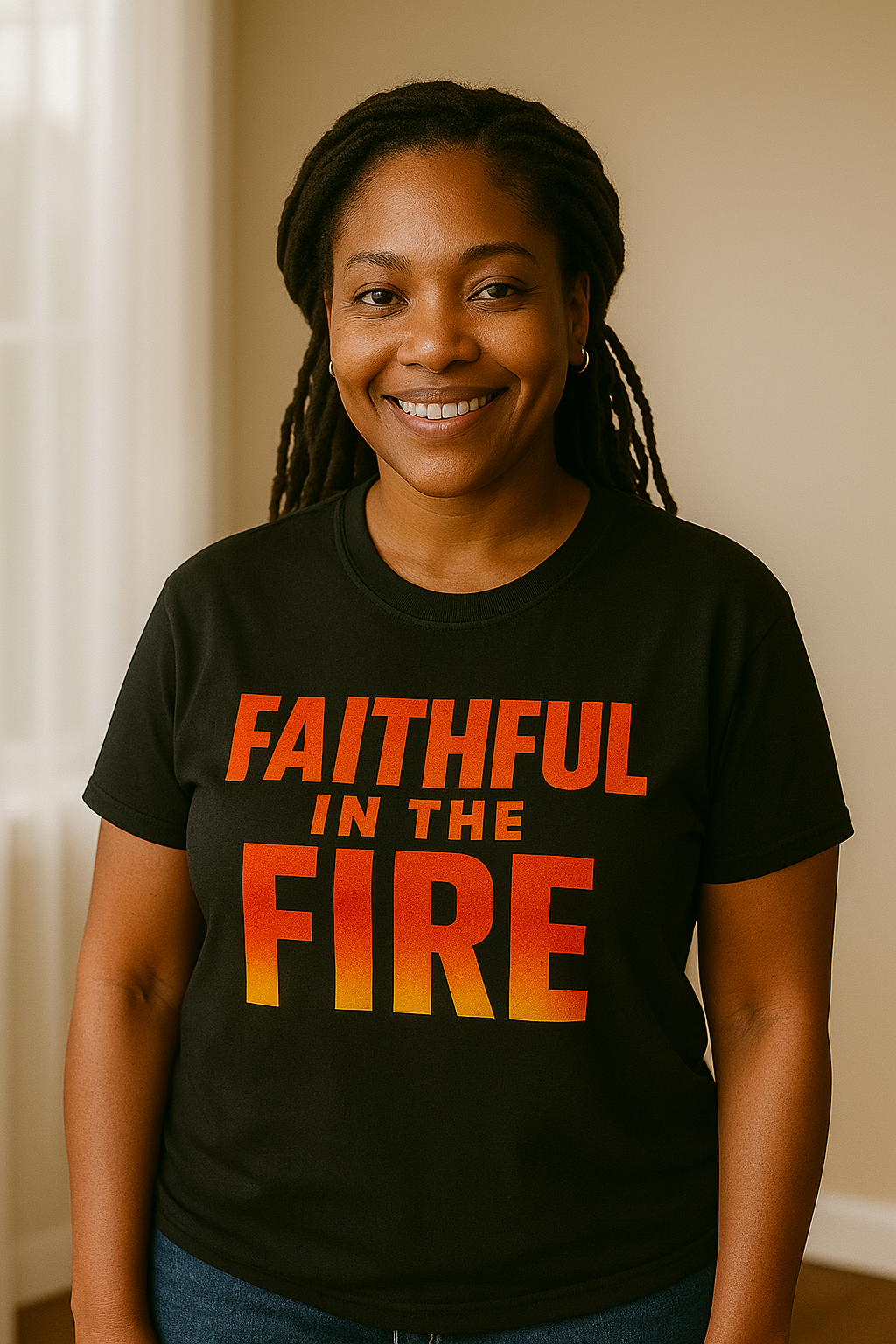 This tee is for the believer who knows that faith isn’t proven in the easy days, but in the flames.